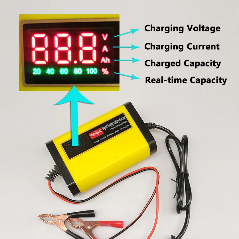 Smart Motorcycle Car Battery Charger 12v 2a Full Automatic 3 Stages Lead Acid Agm Gel Intelligent Lcd Display 12 Volt 10ah 20ah Car Battery Tester Charger Tools Aliexpress